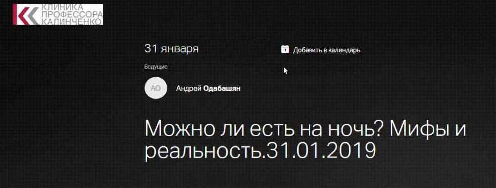 [Клиника профессора Калинченко] Можно ли есть на ночь? Мифы и реальность (Андрей Одабашян)