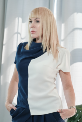 Комбинированная блуза с оригинальным вырезом, переходящим в стойку (Олеся Строганова)