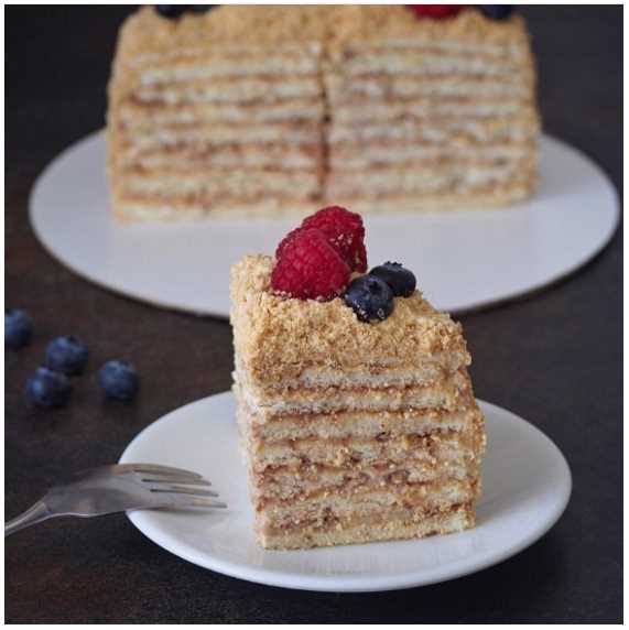Много пушистых коржей, диетическая вареная сгущенка и грецкие орешки.