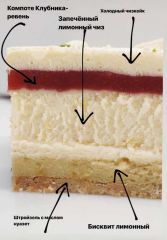 Лимонный бисквит,реконструированное песочное тесто,лимонный запечённый чизкейк,Кули клубника ревень,мусс крем чиз
