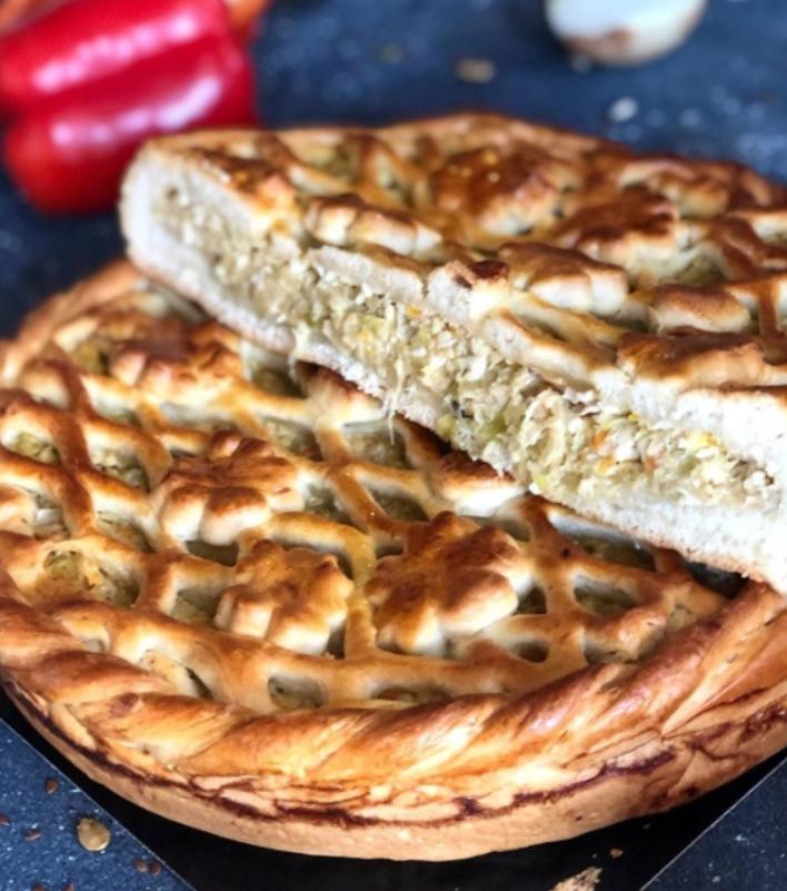 3)Пирог с капустои? на сдобном слое?ном тесте