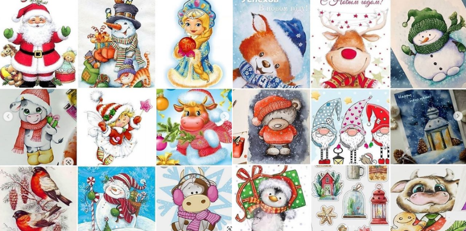 Бычки и Коровки, снегурочка и дед мороз, снеговики, эльфы, снегири, домики и снежинки....