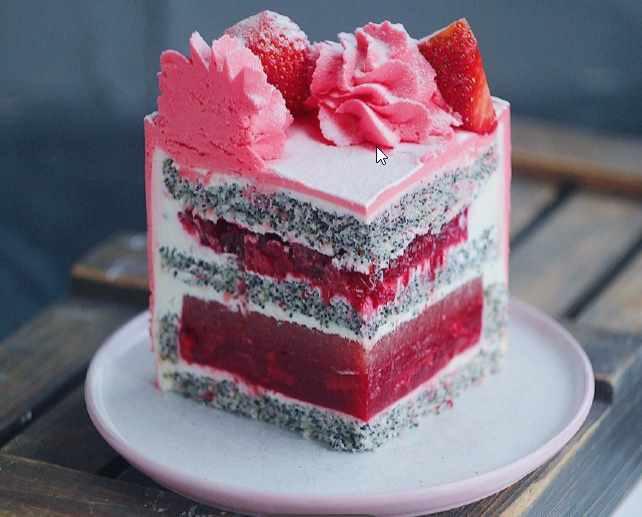 Маковый с начинкой-сэндвич из земляники/клубники и ревеня (меняй на малину, если не в курсе, что это такое), клубничным соусом. Тех карта
