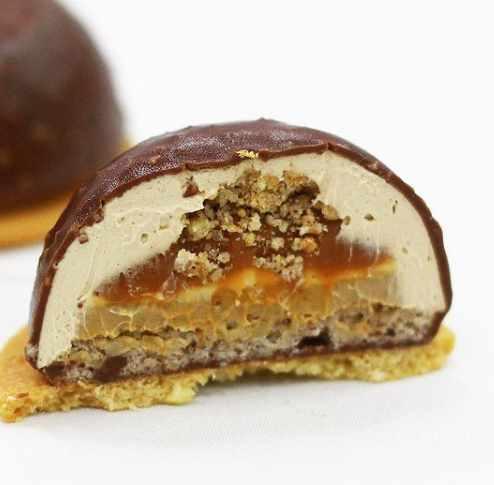 Штройзель фундук, ирис-ваниль, дакуаз фундук, кофейная намелака, ореховый взбитый ганаш, пралине фундук, песочное тесто пате сабле.