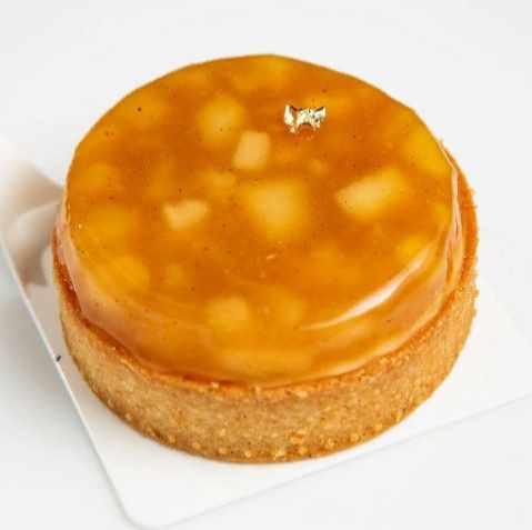 Песочное тесто пате сюкре, франжипан с ромом, яблоки в карамели, крем бергамот-ревень.