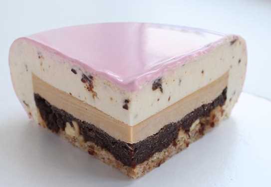 Это современный десерт, состоящий из нежного мусса, фруктово-ягодной начинки и тонкого слоя бисквита (дополнительно в торте могут присутствовать хрустящий слой, крем, карамель, орехи и тд). Это как мороженое, которое держит форму и не тает, при этом требует обязательного хранения в холодильнике!