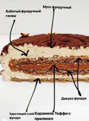 Фундучный дакуаз,карамель тоффи,кранч Фундучный,взбитый Фундучный ганаш,мусс Фундучный