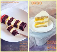Лёгкий миндальный бисквит или шоколадный, ароматнейший заварной крем (курд) из экзотической маракуйи в купе с нежным сливочно-сырным облаком
