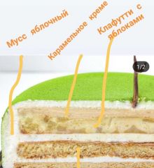 бисквит, песочная основа. запечённые яблоки клафутти, мусс карамель, мусс яблочный
