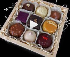 Соленая и банановая карамель, мягкая смородиновая карамель и мягкая арахисовая нуга, кокосовое птичье молоко, пять видов ганаша, три вида мармелада, конфи, джандуйя, роялтин и совершенно поразительная глазурь Тоффи мягкая, но не липкая.