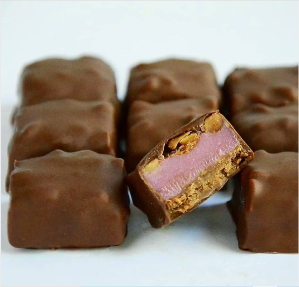 Таежный роман, одна из моих фирменных и знаковых конфет, созданная под вдохновением от простого сибирского десерта из брусники, кедрового ореха и сгущённого молока.