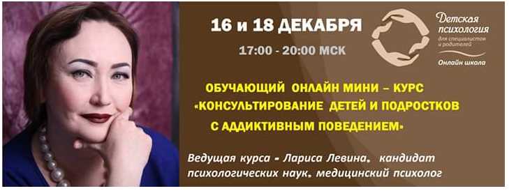 ?Ведущая курса - Лариса Левина, кандидат психологических наук, медицинский психолог (специализация девиантология и психология аддиктиного поведения).