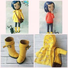 Что входит в мк: вяжем тело куколки( будет вариант ножки сразу связаные в джинсах), ручки цельновязаные. Вышивка глаз, крепление волос, тонировка. Кофта вязаная спицами, джинсы, плащ, сапоги и сумка.