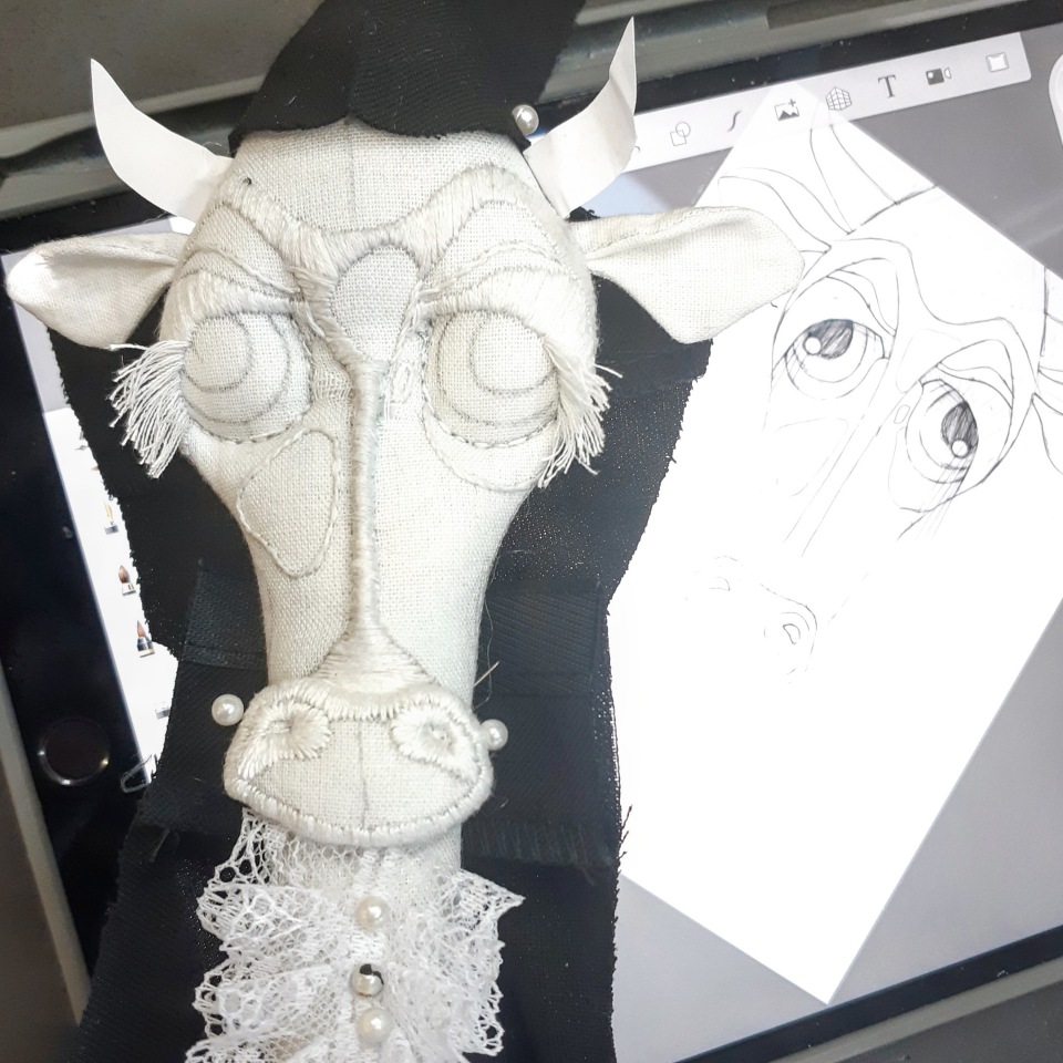Я планировала сделать корову францужненку, но когда посмотрела на эскиз, мне стало скучно., и я нарисовала новый образ.