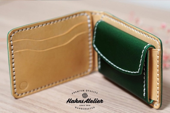 Компактный кожаный кошелек, с несколькими отделениями для пластиковых карт и кармашком для мелочи. Не очень сложен в изготовлении, но выглядит стильно и элегантно.