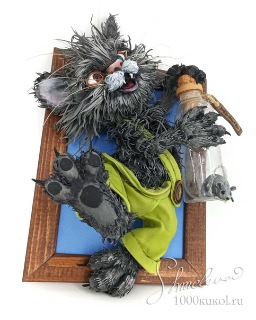Мне очень понравился этот хулиганистый образ, и я дала ему в лапы бутылочку (или пробирку?) с мышкой.