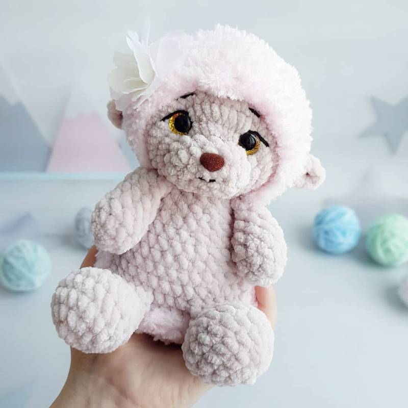 Для малыша хватает одного моточка основного цвета. Глазки 12мм.