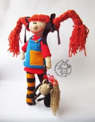 Игрушка связана по кругу на 4-х носочных спицах. Вяжется лицевой гладью. Размер игрушки 50 см.