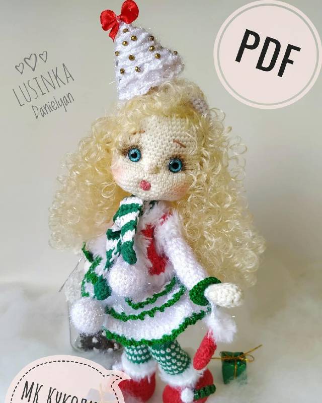 Заменив расцветку, Вы можете связать не только новогоднюю девочку, но и куколку в любом образе.