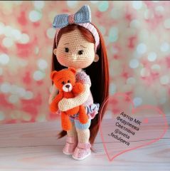 В МК входит описание куколки, одежды и выкройки обуви, а также в качестве бонуса мк по изготовлению мишки для куклы.