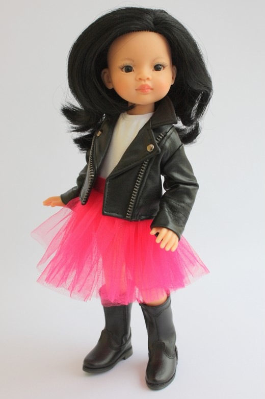 Представляю вам модель , которая станет отличным дополнением к современному гардеробу вашей куклы! Эта модная универсальная куртка будет великолепно смотреться в паре с ее любимыми джинсами или поверх женственных юбок или платьев. Все детали у куртки повторяют настоящую: асимметричная молния спереди, отстрочки на рукавах и декоративные заклепки.