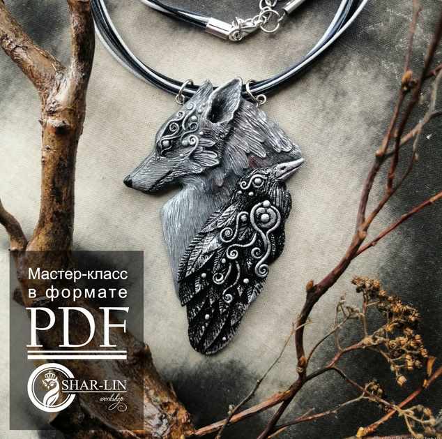Кулон 'Волк и ворон' из полимерной глины (SHAR-LIN)