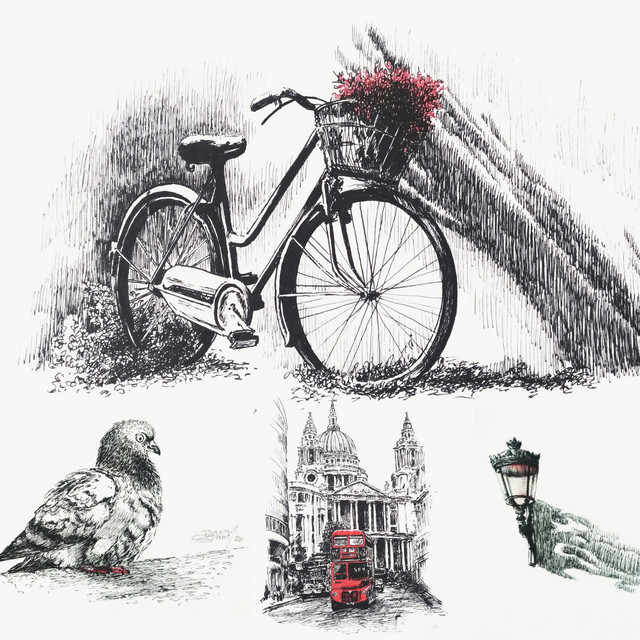 - курс, который состоит из 4-х мастер-классов по быстрым графическим зарисовкам с добавлением красных акцентов.