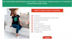 Все упражнения адаптированы для людей с проблемами позвоночника и не потребуют специальной подготовки.Дегенеративно-дисторофические изменения позвоночника не являются противопоказанием,но требуют строго соблюдать все рекомендации.