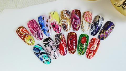 Вы сможете выполнять их как статично (т.е. повторять каждый ноготь точь в точь), либо динамично, располагая элементы дизайна на всех ногтях по разному, объединяя их стилевым решением и цветовой палитрой.
