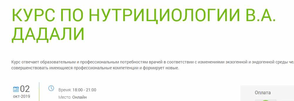 Приглашаем Вас на авторский курс по нутрициологии В. А. Дадали