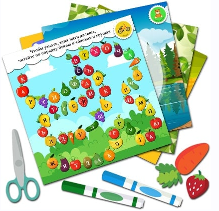 1. ЗАДАНИЕ «ПОСЛАНИЕ В ПАУТИНЕ» Интересная головоломка, выполненная в виде спирали-паутины, в которой зашифровано слово-подсказка. 2. ЗАДАНИЕ «ПРОЙТИ ПО СТРЕЛКАМ» Задание на внимательность и сообразительность, в котором предстоит пройти определенный путь по филворду и собрать буквы слова. 3. ВОПРОС Несколько интересных и занимательных вопросов про разные предметы. Отлично подойдут для того, чтобы «разбавить» ваш квест. 4. ЗАДАНИЕ «ИГРА-ХОДИЛКА» Головоломка, выполненная в виде детской игры-ходилки с кубиками. Нужно всего лишь немного фантазии, чтобы прочитать текст загадки, зашифрованной на игровом поле, и отгадать саму загадку. 5. ЗАДАНИЕ «ГОЛОВОЛОМКА СО СПИЧКАМИ» Задание из серии популярных головоломок со спичками. По условию в задании нужно определенным образом переложить спички и потом прочитать слово. 6. ЗАДАНИЕ «ПАЗЛ» Чтобы получить следующее указание, необходимо правильно собрать пазл. 7. ДЕТСКИЕ ЗАГАДКИ Несколько несложных детских загадок про разные предметы. 8. ЗАДАНИЕ «ПИКНИК» Несложное задание на внимательность, в котором необходимо найти непарный предмет. Этот предмет и станет подсказкой, куда идти дальше. 9. ЗАДАНИЕ «НАЙТИ ОТЛИЧИЯ» Определите, чем отличаются две картинки, и сможете понять, куда идти дальше. 10. ЗАДАНИЕ «РЕБУС» Несколько интересных ребусов. 11. ЗАДАНИЕ «ЦЫПЛЕНОК» Веселое задание для тех, кто помладше. Нужно расставить картинки в правильном порядке и прочитать слово. 12. ЗАДАНИЕ «ВОЛШЕБНЫЕ СЛОВА» Словесная головоломка, в которой к заданным словам нужно правильным образом «присоединить» буквы, чтобы прочитать ключевое слово. 13. ЗАДАНИЕ «АРБУЗ-ПАЗЛ» Головоломка, в которой нужно определить правильное положение фрагментов «развалившегося» арбуза. 14. ЗАДАНИЕ «БУКВЫ НА ЛИСТВЕ» Игрок должен найти все листочки или все камни с буквами, чтобы прочитать слово. Это активное задание, требующее подготовки – определенным образом спрятать листики или камни. 15. ЗАДАНИЕ «ЯБЛОКИ И ГРУШИ» В цепочке фруктов и овощей необходимо найти нужные, и по определенным буквам прочитать слово. 16. ЗАДАНИЕ «ЗАГАДКИ ОТ КРОЛИКА» Чтобы получить следующую подсказку, необходимо ответить на 4 вопроса, ответы на которые представлены в виде картинок. 17. ЗАДАНИЕ «НАРИСОВАТЬ ПО ТОЧКАМ» Нужно соединить все точки и получить картинку-ответ. 18. ЗАДАНИЕ «ВЕРЮ-НЕ-ВЕРЮ» Задание на эрудицию и знания о природном мире. В цепочках из коротких вопросов нужно найти верный путь с правильными ответами и собрать буквы ключевого слова. 19. ЗАДАНИЕ «СУДОКУ-МИШЕНЬ» Известная головоломка судоку в необычном ее исполнении – в виде мишени. Нужно решить её, чтобы прочитать слово-подсказку. 20. ЗАДАНИЕ «ЦВЕТЫ С НАМЁКОМ» Интересная словесная головоломка, в которой сначала нужно составить слова из слогов, написанных на лепестках цветочков, а потом догадаться, на что они все указывают. 21. ЗАДАНИЕ «ГРАФИЧЕСКИЙ ЧАЙНВОРД» Нужно подобрать правильные названия к нарисованным в карточке картинкам, после чего они помогут прочитать ключевое слово. 22. ЗАДАНИЕ «ЦВЕТОЧНЫЙ ШИФР» Незамысловатый шифр из подсолнухов, в котором спрятан текст загадки. 23. ЗАДАНИЕ «ОРИГАМИ-КОРАБЛИК» Все очень просто: нужно на минутку вернуться в детство и вспомнить, как из листа бумаги сложить кораблик. Как только кораблик будет готов, то прочитать ключевое слово уже не составит труда.