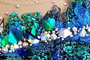 Шьем зеленый купальник. Часть 10. Декорируем глиттерную ткань камнями