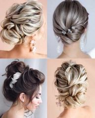 1) низкий пучок из завитых локонов с выразительной текстурой макушки;