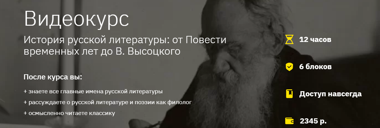 На этом курсе мы поговорим об истории русской литературы. За 12 часов мы будет пройдем путь от летописей Древней Руси до постмодернизма XXI века. Мы научимся разбираться в литературных направлениях, жанрах, стилистических особенностях произведений, выясним причины возникновения того или иного явления, наработаем навык анализа художественного текста, а также поговорим о ключевых авторах в пределах конкретной эпохи.