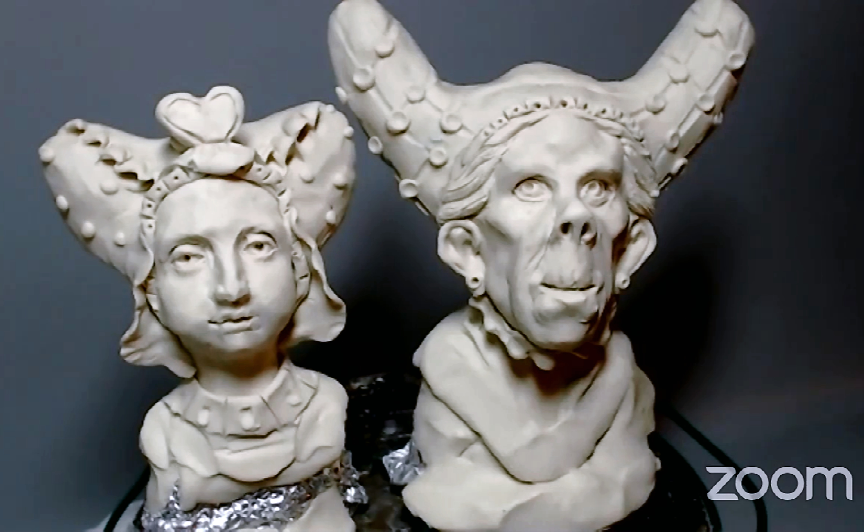 Лепка голов двух очень разных Герцогинь Страны Чудес с подробной проработкой обоих стилизованных лиц разного возраста и характера,