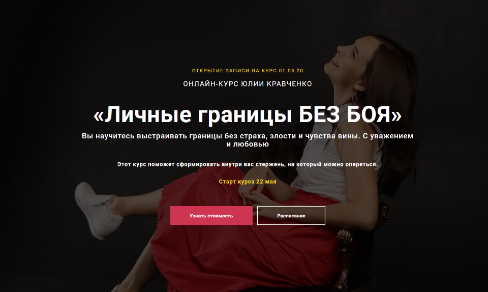 С тех пор, как я закрыла все свои гештальты, исцелила раны и обрела опору внутри себя, меня перестали окружать люди, которые нарушают границы. Наоборот, они относятся ко мне с уважением – также, как я отношусь к ним. В этом наша сила – творить свою реальность. И если вам надоела та, в которой вы сейчас живете – добро пожаловать на курс «Личные границы БЕЗ БОЯ», на котором вы также, как и я, обретете себя.