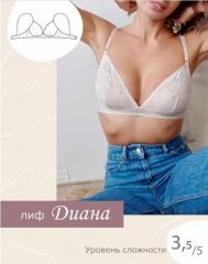Лиф с отрезными чашками. На чашках вытачки. Линия притачивания чашек фиксируется резинкой. На лифе бельевая застежка на крючки и петли по центру спины.