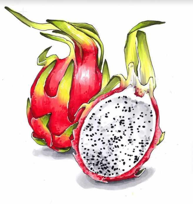 Когда я впервые увидела драгонфрут, мое внимание сразу привлекли эти необычные чешуйки! Тут же пришло однозначное решение - нарисовать. В этом уроке я расскажу вам как изобразить этот сказочный фрукт. Мы сделаем карандашный набросок, обведем его линером и выполним работу в цвете, особое внимание уделяя переходу красного в зеленый.