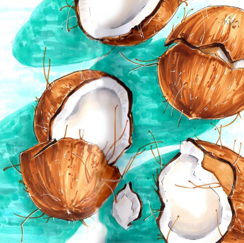 Эти невероятные кокосы! Как красиво здесь сочетается яркий бирюзовый с приглушенным коричневым. Давайте порисуем их вместе?