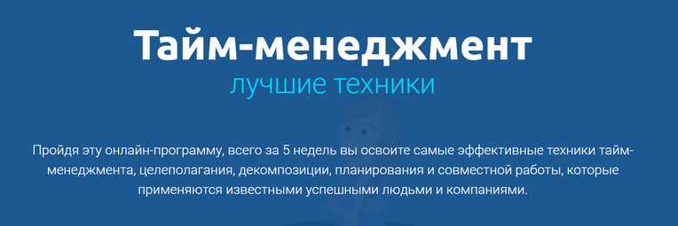 Пройдя эту онлайн-программу, всего за 5 недель вы освоите самые эффективные техники тайм-менеджмента, целеполагания, декомпозиции, планирования и совместной работы, которые применяются известными успешными людьми и компаниями.
