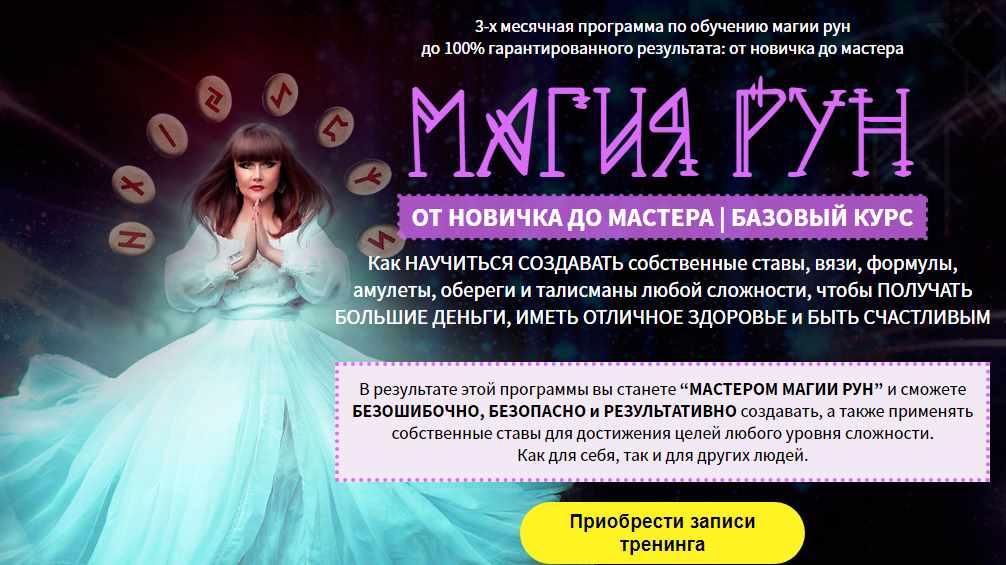 В результате этой программы вы станете “МАСТЕРОМ МАГИИ РУН” и сможете БЕЗОШИБОЧНО, БЕЗОПАСНО и РЕЗУЛЬТАТИВНО создавать, а также применять собственные ставы для достижения целей любого уровня сложности.