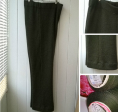 Основное полотно - кулирная гладь. Брюки связаны из 100% мериносf, 2/48 в 6 сложений - суммарная толщина нити 400 метров в 100 грамм.