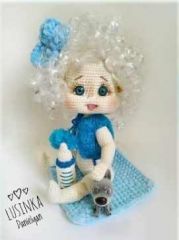 Малышка при моих материалах получается 25см. Сборка нитяным креплением. Ножки, ручки и головушка крутятся.