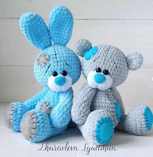 Связаны по моему описанию 'Мишка с голубым носом'+ ушки для зайки ?? ??