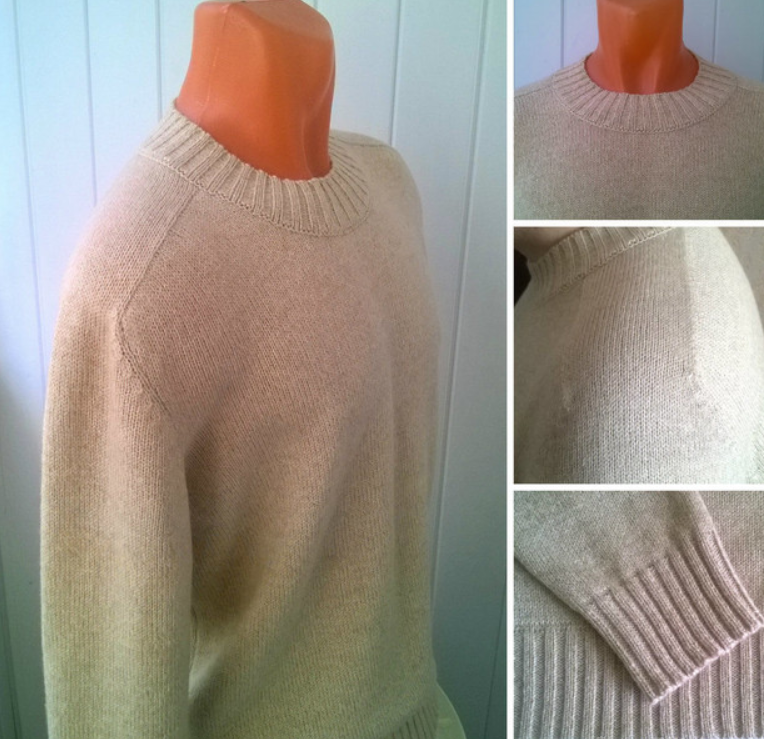 Описание - подробная иллюстрированная пошаговая инструкция процесса вязания деталей свитера, ВТО (влажно-тепловая обработка) и последующей сборки изделия.