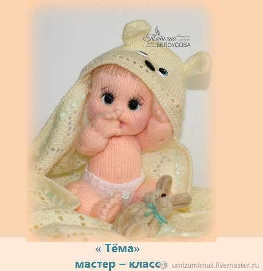 Представляю Вашему вниманию подробный МК по созданию пупса ' Тёма'. Пупс вяжется на 4-х спицах по кругу.