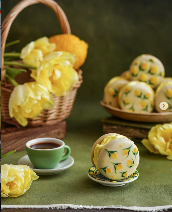 Зефиросэндвичи с лимонным зефиром с миндалем и малиновым джемом и расписывать их лимончиками (а также покажу другие узоры)