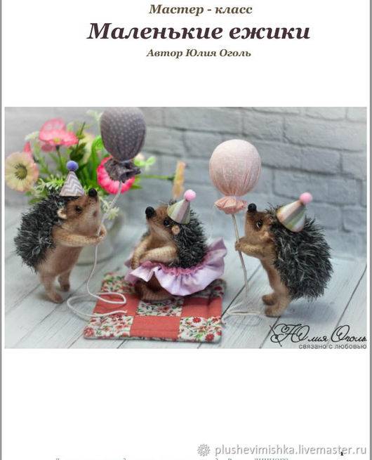 Мастер-класс Маленькие ежики! Составлен на 46 стр печатного текста + пошаговые фото. Сложность работы средняя. Рост ежиков из данной пряжи 10 см. В МК есть описание как сделать колпачок и шарик, сшить юбочку.