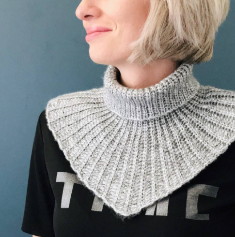Манишка вяжется поперек, начиная сбоку, одним полотном. В конце соединяем начальный и кромочный ряды при помощи иглы.