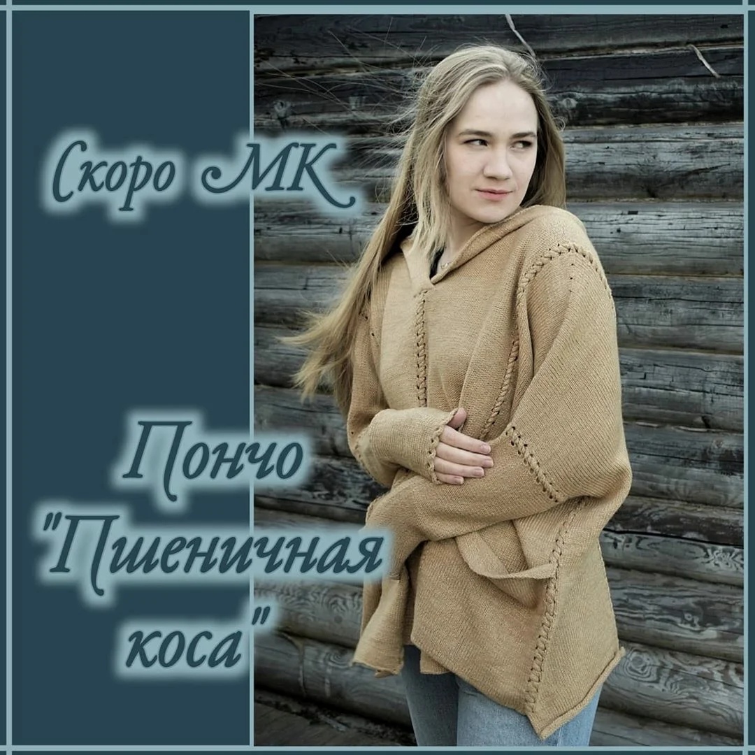 [Машинное вязание] Пончо «Пшеничная коса» (zapetlis)